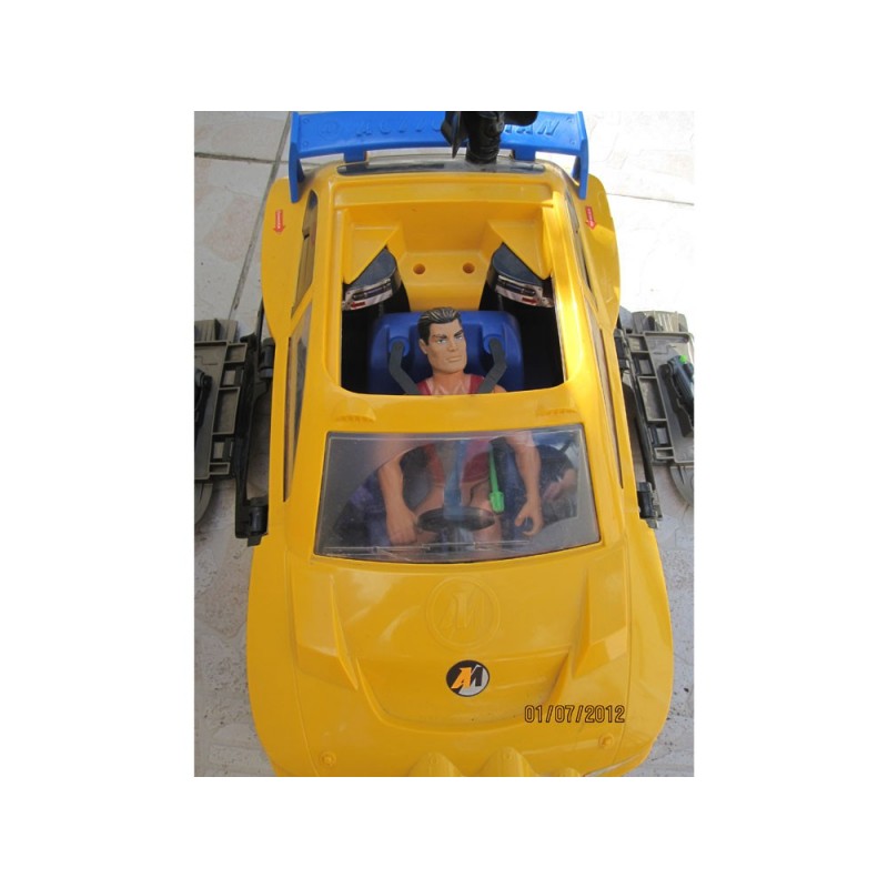 Voiture action man jaune et bleue avec 1 action man à l'intérieur